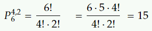 Nos planteamos encontrar las permutaciones con repetición de A, repetida cuatro veces, y B, repetida 2 veces.